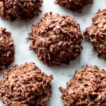 - Form Clusters: Using a small cookie scoop, drop scoops of the chocolate-coconut mixture onto the prepared baking sheet, spacing them evenly apart to form clusters.