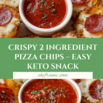 This 2 Ingredient Pizza Chips recipe is a quick and tasty snack—crispy baked cheese rounds topped with pepperoni for a low-carb, pizza-flavored crunch. Perfect for parties, game day, or guilt-free snacking!