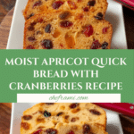 Apricot Quick Bread is a moist and flavorful treat perfect for breakfast or a cozy snack. Combining sweet dried apricots and tart cranberries with a hint of orange, this bread is easy to make and sure to please your taste buds.