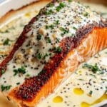 Baked Boursin Salmon is a creamy and flavorful one-pan dish featuring tender salmon fillets topped with herby Boursin cheese and baked to perfection. This French-inspired recipe is quick and fuss-free, making it an elegant yet easy dinner option perfect for weeknights or guests.