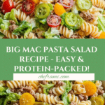 Keywords: Big Mac Pasta Salad, gluten-free pasta salad, beef pasta salad, chickpea pasta recipe, healthy pasta salad, Greek yogurt dressing, easy pasta salad, Big Mac flavors