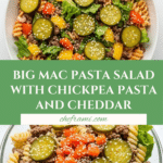 Keywords: Big Mac Pasta Salad, Chickpea pasta salad, Ground beef pasta salad, Healthy pasta salad, Greek yogurt dressing, Low fat pasta salad