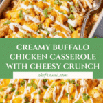 Keywords: buffalo chicken casserole, buffalo chicken recipe, easy game day recipes, creamy buffalo chicken, baked buffalo chicken