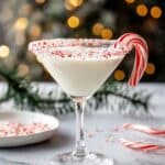 Keywords: Candy Cane Martini, peppermint cocktail, holiday drink, Christmas cocktail, festive martini, white chocolate liqueur, peppermint schnapps