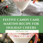 A festive and refreshing Candy Cane Martini blending the coolness of peppermint schnapps with the smooth sweetness of white chocolate liqueur, finished with a crushed candy cane rim and garnished with mini candy canes – perfect for holiday celebrations.