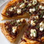 Keywords: caramelized onion tart, goat cheese tart, puff pastry appetizer, easy French appetizer, caramelized onion recipe