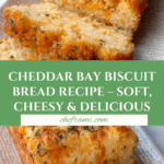Cheddar Bay Biscuit Bread is a savory, cheesy bread inspired by the flavors of famous cheddar bay biscuits. This moist and fluffy bread combines shredded cheddar cheese, a hint of garlic and onion in the topping, and a buttery, tender crumb that makes it the perfect side for any meal or a delicious snack on its own.