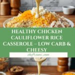This Chicken Cauliflower Rice Casserole is a creamy, cheesy, and comforting low-carb dish packed with shredded chicken, sautéed cauliflower rice, and flavorful seasonings. It features a melty cheddar cheese topping and optional veggies like spinach or mushrooms, making it a perfect healthy meal for busy weeknights or anytime you crave a hearty casserole with a light twist.