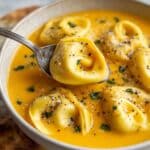 - Serve and Garnish: Ladle the creamy tortellini soup into bowls. If desired, sprinkle with additional shredded Parmesan cheese for extra flavor. Serve hot and enjoy.