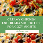 This Chicken Enchilada Soup is a flavorful and comforting dish combining classic Mexican spices, tender chicken, creamy cheeses, and hearty beans and corn in a rich, savory broth. It’s perfect for a cozy dinner and easy to prepare on the stovetop.
