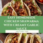 Keywords: chicken shawarma, garlic sauce, toum, Middle Eastern chicken, marinated chicken, roasted chicken, pita wrap, homemade shawarma, garlic dip