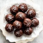 8. Sprinkle Salt: Return the coated balls to the parchment-lined tray and sprinkle with flaky sea salt on top for a delightful salty crunch.