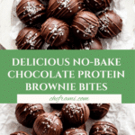 Delicious and healthy no-bake chocolate brownies made with almond butter, protein powder, and rich cocoa. These bite-sized treats are coated in smooth melted chocolate and sprinkled with flaky sea salt, perfect for a satisfying snack or dessert.
