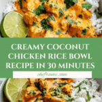 Keywords: Coconut Chicken Rice Bowl, coconut milk chicken, tropical chicken rice, easy chicken dinner, creamy coconut chicken, quick rice bowl, healthy chicken recipe