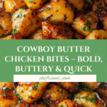 Cowboy Butter Chicken Bites are tender chicken pieces tossed in a bold, buttery sauce made with garlic, lemon, Dijon mustard, smoked paprika, and fresh herbs. Ready in just 25 minutes, this flavorful dish makes a perfect appetizer or weeknight meal that’s sure to impress.