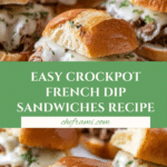 Keywords: Crockpot French Dip, slow cooker sandwiches, beef chuck roast recipe, au jus sandwich, easy slow cooker meal, comfort food sandwich