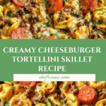 Keywords: Cheeseburger tortellini, creamy pasta skillet, ground beef pasta, one-pan meal, quick dinner recipe, comfort food, cheesy pasta skillet
