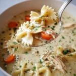 This creamy Chicken Alfredo Soup transforms a classic pasta dish into a warm, comforting bowl of goodness. Packed with tender shredded chicken, bowtie pasta, and a rich parmesan-cream base, this one-pot soup delivers indulgent flavors with every spoonful. Perfect for cozy nights or hearty lunches, it’s an easy weeknight meal that balances richness with vibrant herbs and a hint of spice.