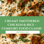 Creamy Smothered Chicken & Rice is a comforting and satisfying meal featuring tender chicken pieces bathed in a rich, creamy sauce, served over a bed of fluffy white rice. This dish transforms simple ingredients into an extraordinary culinary embrace, perfect for any occasion.