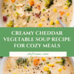 This Creamy Vegetable Cheddar Soup combines a medley of fresh vegetables simmered in a savory vegetable broth, enriched with sharp cheddar cheese and whole milk for a luscious and comforting bowl. Perfect for chilly days, it offers a satisfying, velvety texture with chunks of tender potatoes, carrots, and broccoli, enhanced by aromatic garlic and onions.