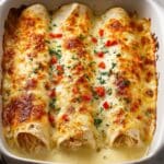 Easy and delicious creamy white chicken enchiladas featuring a rich homemade white sauce, tender shredded chicken, and melty cheeses baked to golden perfection. Perfect for a satisfying weeknight dinner or special occasion.