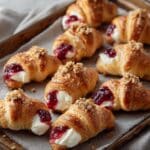 Crescent Bites are a delightful combination of flaky pastry, creamy sweet filling, and tangy cranberry topping. Perfect for holiday gatherings or a simple snack, these bite-sized treats are easy to make and sure to impress.