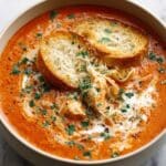 Crockpot Chicken Parmesan Soup brings the classic flavors of chicken Parmesan into a warm, comforting soup. It features tender shredded chicken, a rich tomato broth with Italian herbs, small pasta, and melted cheeses, perfect for chilly days.