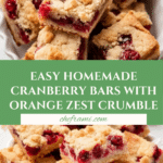 Keywords: cranberry bars, crumb topping, baked dessert, cranberry dessert, fall dessert, orange zest cake, sour cream cake