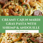 Keywords: Cajun pasta, Mardi Gras pasta, Pappadeaux style, Cajun seasoning, creamy pasta, andouille sausage pasta, shrimp pasta, chicken pasta, Mardi Gras recipe