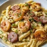 Delicious Pappadeaux Mardi Gras Pasta is a vibrant Cajun-inspired dish combining tender chicken, succulent shrimp, flavorful andouille sausage, and colorful vegetables tossed in a creamy Cajun-spiced Parmesan sauce served over perfectly cooked penne pasta. This one-pan meal offers an exciting balance of spice, creaminess, and hearty protein, perfect for fans of bold southern flavors.