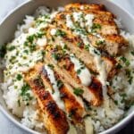 These Easy Chicken & Rice Bowls with Creamy Garlic Sauce are a perfect weeknight meal combining tender, golden-seared chicken, fluffy white rice, and a rich, velvety garlic sauce. Ready in about 30 minutes, this comforting dish delivers restaurant-quality flavor with minimal effort, ideal for family dinners or meal prepping.