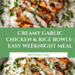 Keywords: chicken rice bowls, creamy garlic sauce, easy weeknight dinner, one pan chicken recipe, creamy chicken recipe, garlic sauce chicken, chicken and rice bowl