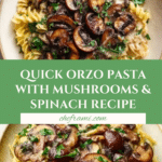 Keywords: orzo pasta, mushrooms, spinach, easy pasta recipe, vegetarian dinner, Mediterranean pasta, quick meal, sautéed vegetables, Parmesan pasta