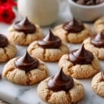 Keywords: Peanut Butter Blossom Cookies, Hershey’s Kiss Cookies, Easy Peanut Butter Cookies, Holiday Cookies, Soft Peanut Butter Cookies