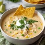 This Easy White Chicken Chili recipe is a comforting and flavorful dish perfect for a cozy dinner night. Featuring tender shredded chicken, creamy Neufchatel cheese, white beans, and a blend of warm spices, it delivers a deliciously smooth and hearty chili with a subtle kick. Garnished with fresh cilantro, lime juice, and optional toppings like avocado and tortilla chips, it’s an inviting meal that’s both quick and satisfying.
