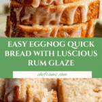 Keywords: eggnog bread, quick bread, holiday bread, Christmas bread, spiced bread, eggnog glaze