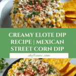 Keywords: Elote dip, Mexican street corn dip, corn appetizer, creamy corn dip, party dip, Mexican inspired recipe, cotija cheese dip, easy appetizer