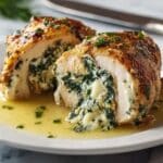 Keywords: Boursin stuffed chicken, stuffed chicken breast recipe, creamy stuffed chicken, baked chicken breast, garlic herb chicken, spinach stuffed chicken