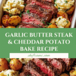 Keywords: garlic butter steak bake, cheddar potato bake, baked steak recipe, oven-baked steak and potatoes, comfort food, hearty dinner