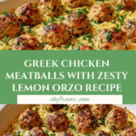 Keywords: Greek chicken meatballs, lemon orzo, Mediterranean recipe, easy dinner, chicken meatballs, lemon pasta, feta cheese meatballs, healthy chicken recipe