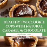 This Healthy Twix Cookie recipe offers a delicious, guilt-free twist on the classic candy bar. Made with wholesome ingredients like almonds, shredded coconut, medjool dates, sunflower seed butter, and dark chocolate, these cookie cups combine a nutty base, a luscious caramel filling, and a rich chocolate topping. Perfect for a nutritious snack or dessert, these no-bake treats are easy to prepare and naturally sweetened for a healthier indulgence.