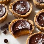 - Top with Chocolate: Melt the chocolate in the microwave at 20-30 second intervals, stirring thoroughly between sessions to prevent burning. Once melted, mix in the tablespoon of sunflower seed butter until smooth. Pour or spoon this chocolate mixture on top of each cookie cup, leveling it so it is flush with the cookie base.
