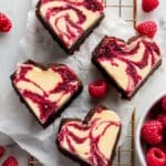 Keywords: cheesecake brownies, heart shaped brownies, raspberry swirl brownies, Valentine’s Day brownies