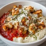 This High Protein Chicken Parm Cottage Cheese Bowl is a flavorful, nutritious dish perfect for a high-protein diet. Combining tender chicken breast with creamy cottage cheese, marinara sauce, and a cheesy baked topping, this recipe offers a satisfying and easy-to-make meal that can be enjoyed as a main dish, in wraps, or for meal prepping.