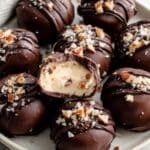 These High Protein Frozen Peanut Butter Greek Yogurt Bites are a delicious and healthy snack, combining creamy Greek yogurt, powdered peanut butter, and a touch of maple syrup, all coated in rich dark chocolate. Perfect for a protein-packed treat that’s easy to make and freezer-ready.