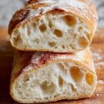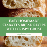 This Homemade Ciabatta Bread Recipe yields a rustic, airy loaf with a crisp crust and a chewy interior. Using simple ingredients like flour, yeast, salt, and water, this traditional Italian bread is perfect for sandwiches or serving alongside your favorite dishes. The dough is wet and sticky, promoting a light texture with large air pockets, and requires gentle handling to preserve its delicate air bubbles. Enjoy baking this classic bread at home with minimal ingredients and straightforward steps.