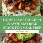 Honey Lime Chicken & Avocado Rice Stack is a flavorful and fresh dish perfect for easy meal prep. Juicy chicken glazed with honey and lime pairs beautifully with creamy avocado and fluffy rice, creating a balanced and satisfying meal.