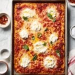 This Best-Ever Focaccia Pizza recipe combines the airy, textured focaccia bread with a flavorful tomato sauce and a blend of cheeses for a delicious homemade pizza. The dough is made from simple ingredients and is allowed to rise and chill for enhanced flavor and texture. Topped with mozzarella, ricotta, Parmesan, fresh basil, and a spicy touch of red pepper flakes, this pizza is both comforting and impressive, perfect for a family meal or entertaining guests.