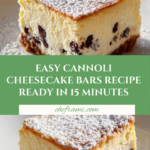 If you love the rich flavors of cannoli and the creamy texture of cheesecake, these Cannoli Cheesecake Bars are your new go-to dessert. Ready in just 15 minutes of prep time, they combine a buttery graham cracker crust with a luscious ricotta-studded cheesecake filling dotted with mini chocolate chips. Perfect for any occasion, these bars deliver all the indulgence without the fuss.