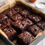 4. Cool and Serve: Remove the brownies from the oven and let them cool in the pan for at least 15 minutes to set properly for easier slicing. Optionally, lightly dust the top with a pinch of sea salt to enhance the chocolate flavor and add a subtle sophisticated touch.